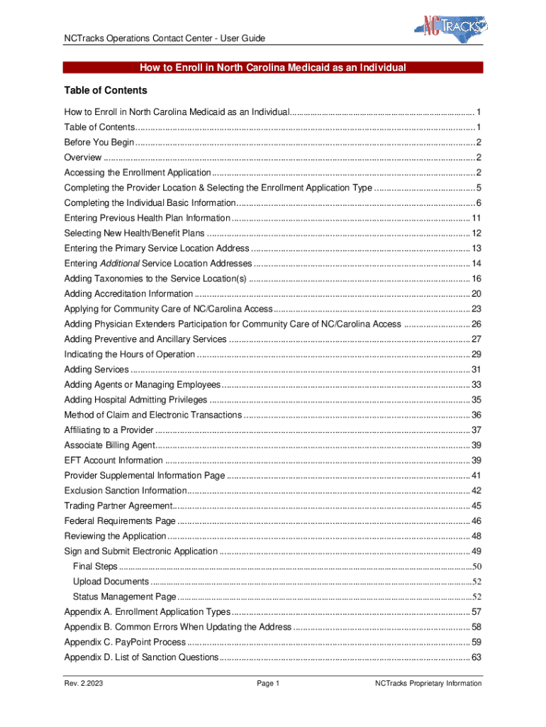 Tracks Operations Contact Center User Guide to Enroll in North Carolina Medicaid as an Individual Table of Contents How to Enroll in North Carolina Medicaid as an Individual ..................................................................................