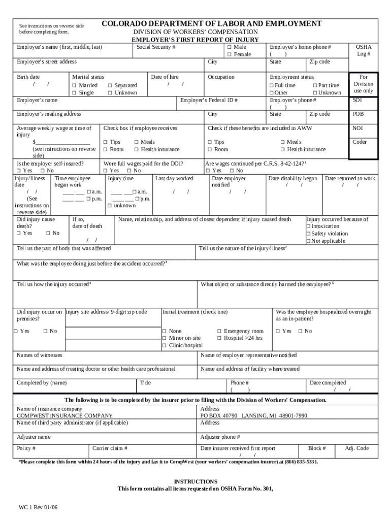 What is Bill Of Sale Colorado First Report Of Injury Form?