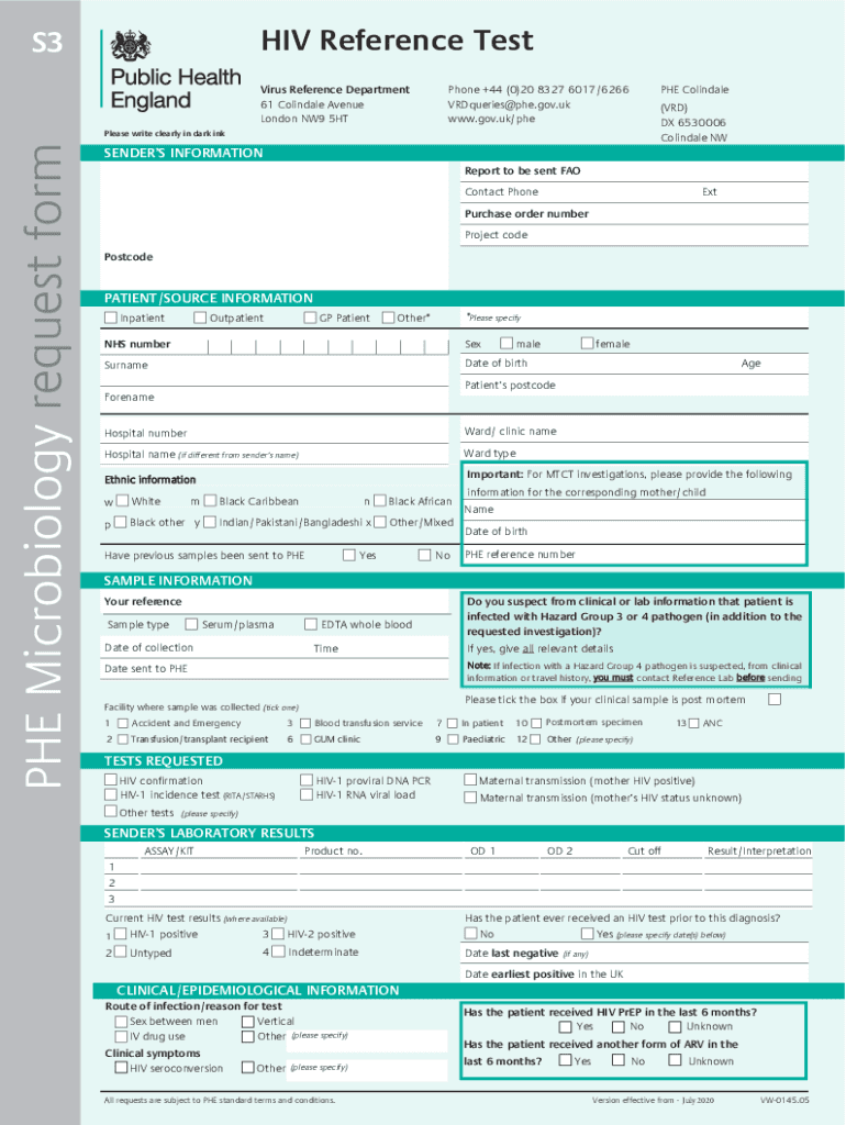 HIV Reference TestS3Virus Reference Department 61 Colin dale Avenue London NW9 5HTPhone +44 (0)20 8327 6017/6266 VRDqueries@phe.gov.uk www.gov.uk/phePHE Colin dale (VRD) DX 6530006 Colin dale NEPHEW