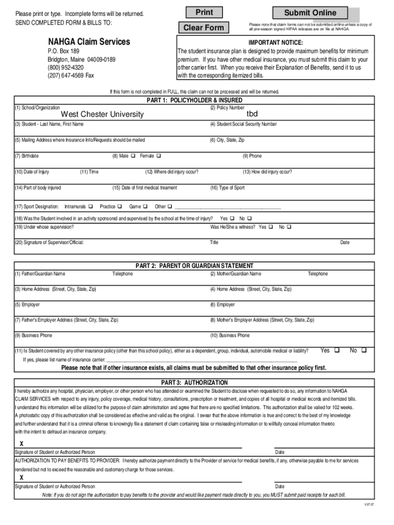 SEND COMPLETED FORM & BILLS TO:NAH GA Claim ServicesPrintSubmit Antinuclear Formulas note that claim forms can not be submitted online unless