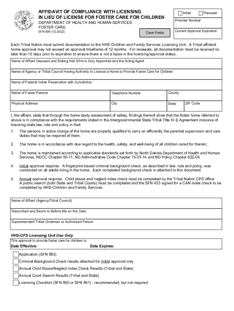 IN LIEU OF LICENSE FOR FOSTER CARE FOR CHILDRENInitial