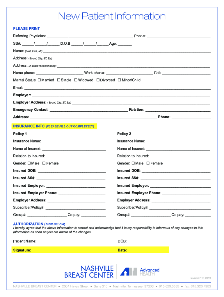 Get the free New Patient Information Form (Please Print and complete ...