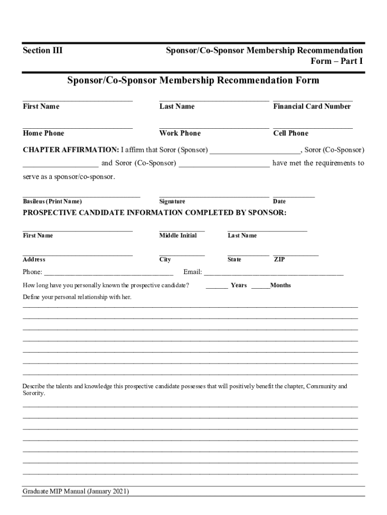 Form Part Sponsor/Cosponsor Membership Recommendation Form