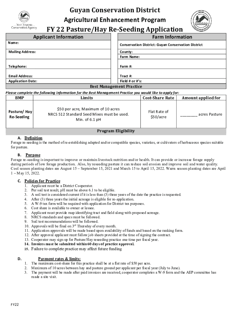 Get the free FY 22 Pasture Hay Reseeding Application. ...