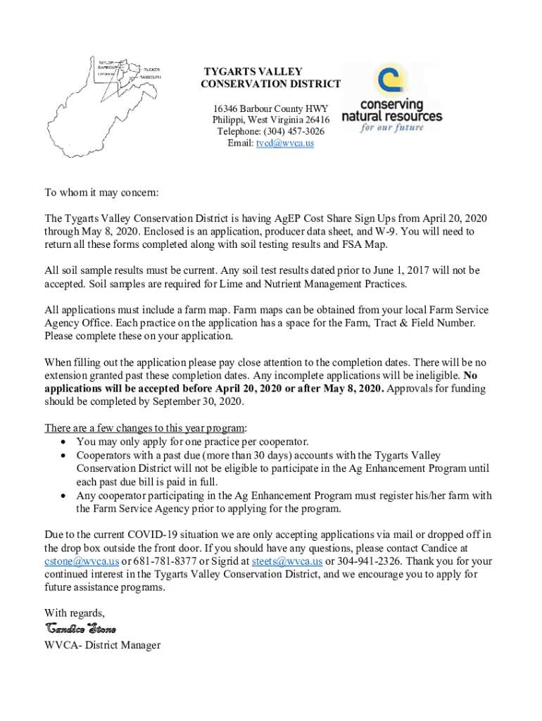 TYRANTS VALLEY CONSERVATION DISTRICT 16346 Barbour County HWY Philippe, West Virginia 26416 Telephone: (304) 4573026 Email: tvcd@wvca.usTo whom it may concern: The Tyrants Valley Conservation District