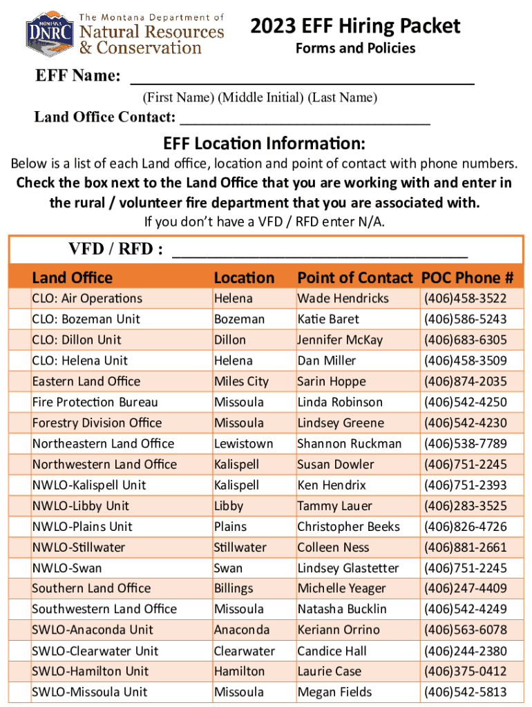 (First Name) (Middle Initial) (Last Name)Land Office Contact: ___EFF Location Information:
