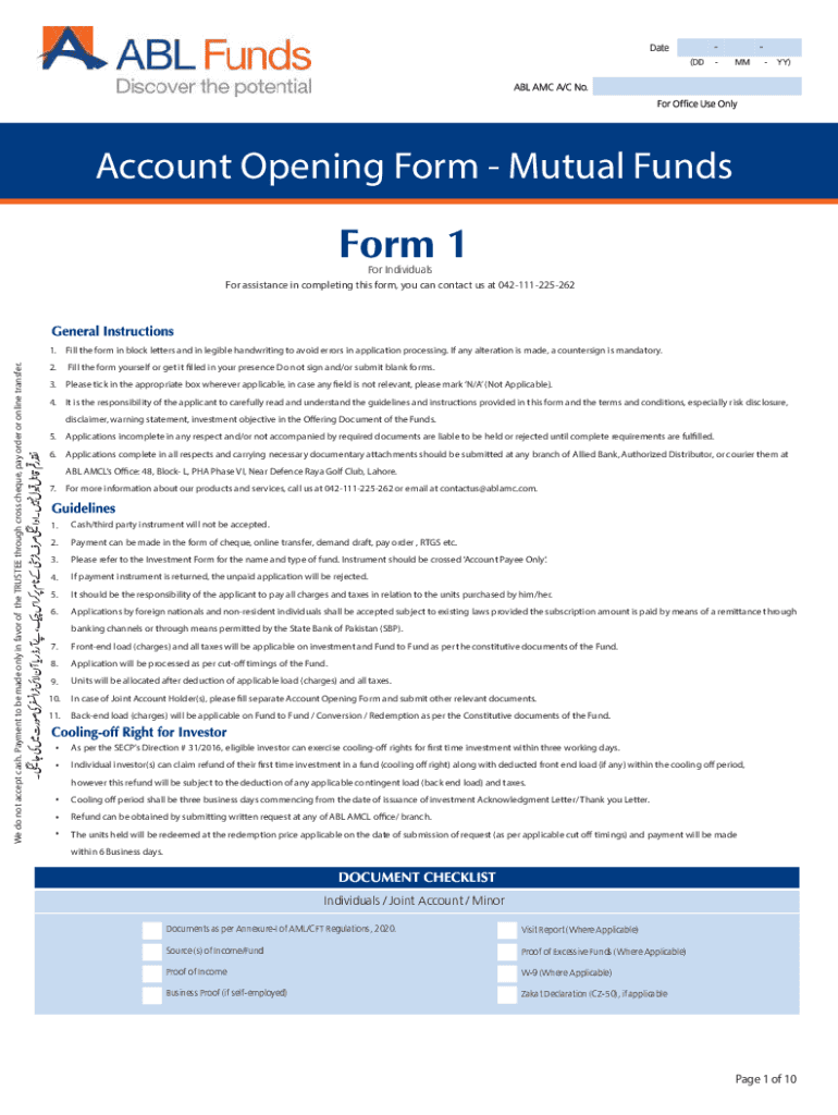 Account Opening Form Mutual Funds For Individuals For assistance in completing this form, you can contact us at 042111225262We do not accept cash. Payment to be made only in favor of the TRUSTEE through