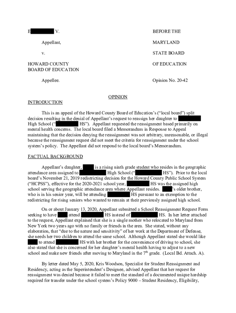 CATERINA V.BEFORE Appellant, Maryland. STATE BOARDHOWARD COUNTY