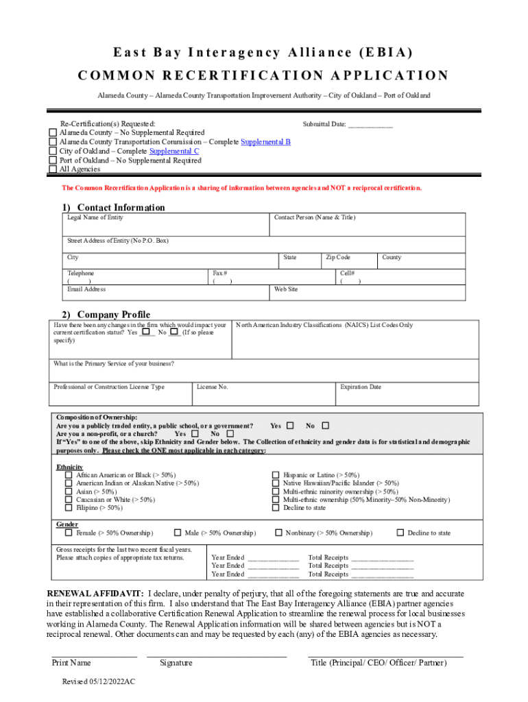 COMMON RECERTIFICATION APPLICATION