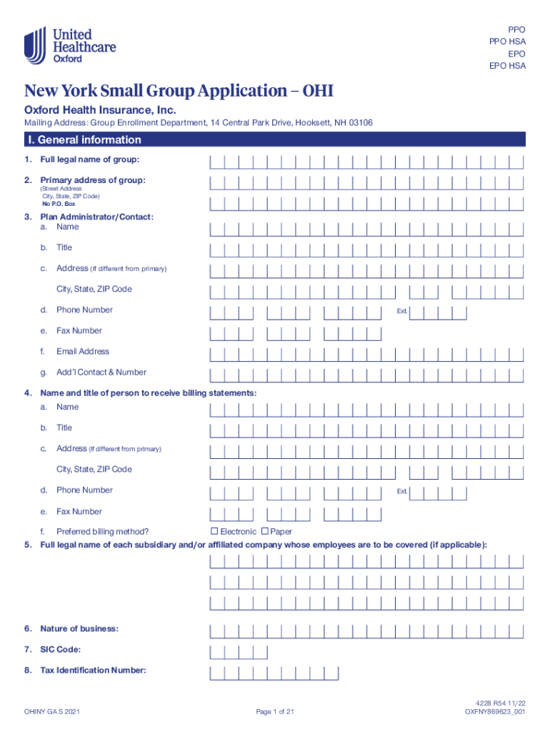 PPO HSA EPO Anew York Small Group Application OHI Oxford Health Insurance, Inc. Mailing Address: Group Enrollment Department, 14 Central Park Drive, Hook sett, NH 03106I. General information 1. Full