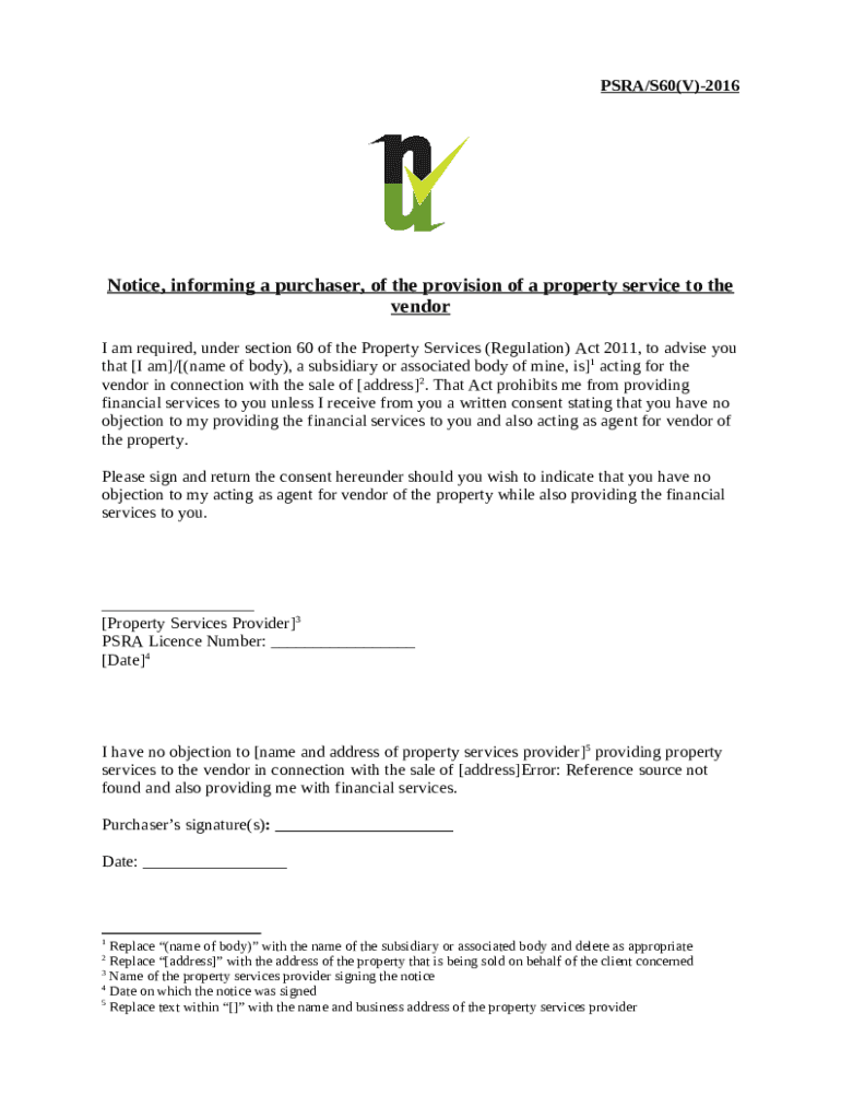 Template Notification of the intention of a property services provider to provide financial services instructions