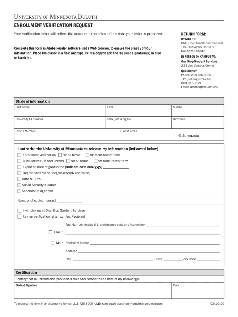 UNIVERSITY OF MINNESOTA DULUTHThis cover page includes instructions about where and how to turn in your form. If you are submitting a form that contains personally identifiable information (i.e. name,