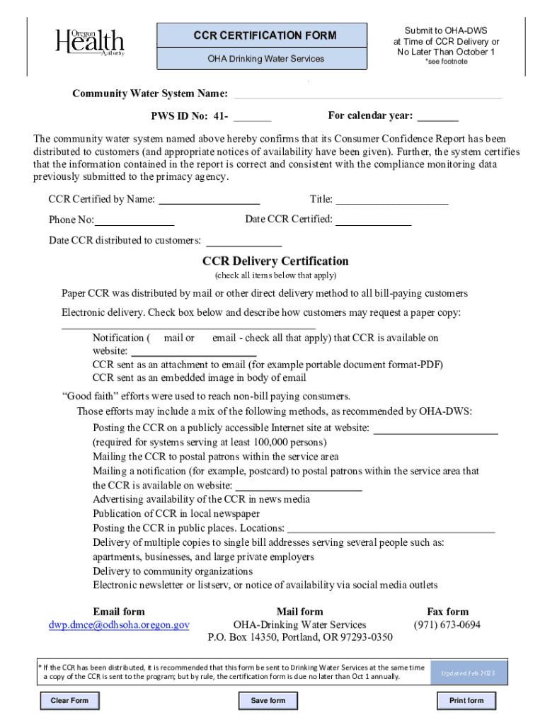 As with any regulatory process, the OR CCR Certification Form may raise several frequently asked questions. These might include common submission issues such as how to amend a previously submitted form or what to do in case of missing information. Timely resolution of these issues is crucial for maintaining compliance and protecting public health.