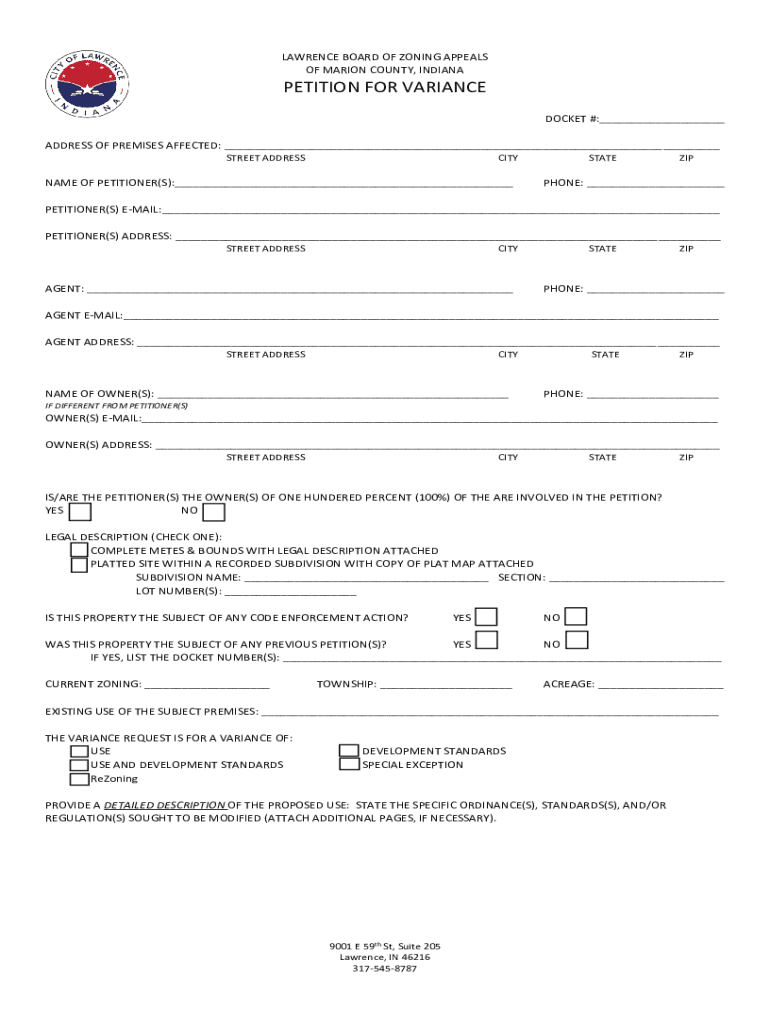 City of Lawrence Indianizing CHECKLIST FOR VARIANCE PETITION Please read carefully Your Variance Packet must be filed electronically via permits@cityoflawrence.org or in person with the Board Secretary,