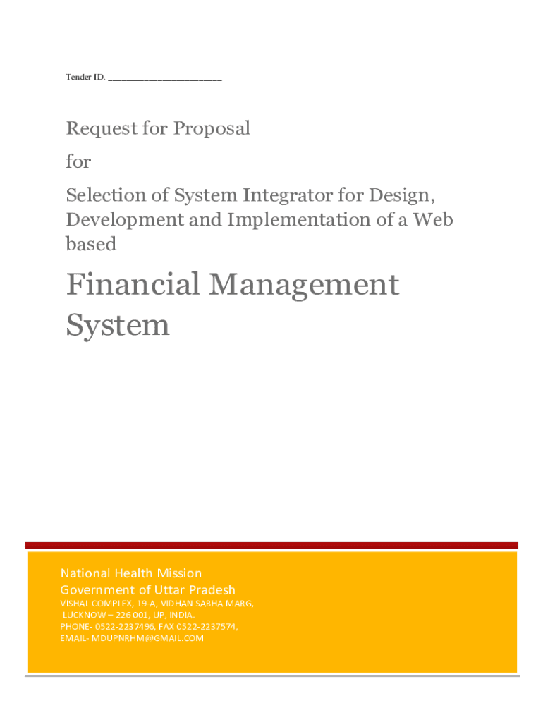 Tender ID. ___Request for Proposal for Selection of System Integrator for Design, Development and Implementation of a Web basedFinancial Management Systematical Health Mission Government of Uttar