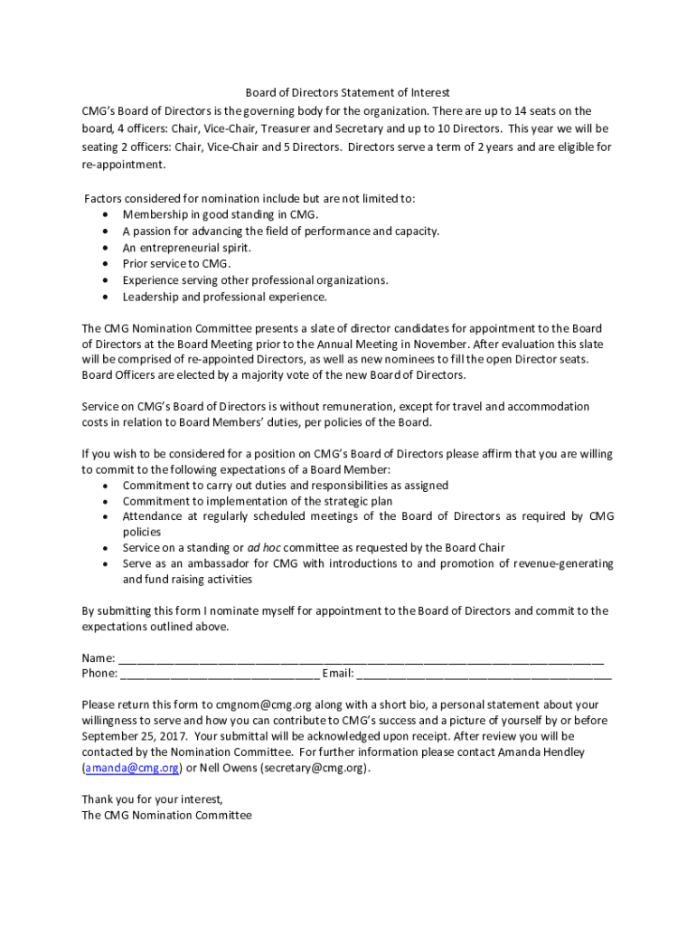 CMG's Board of Directors is the governing body for the organization. There are up to 14 seats on the