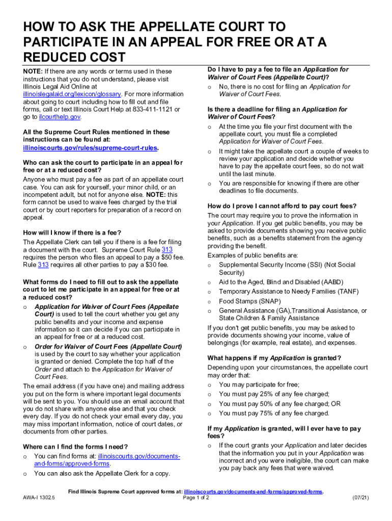 HOW TO ASK THE APPELLATE COURT TO PARTICIPATE IN AN APPEAL FOR FREE OR AT A REDUCED COST NOTE: If there are any words or terms used in these instructions that you do not understand, please visit Illinois