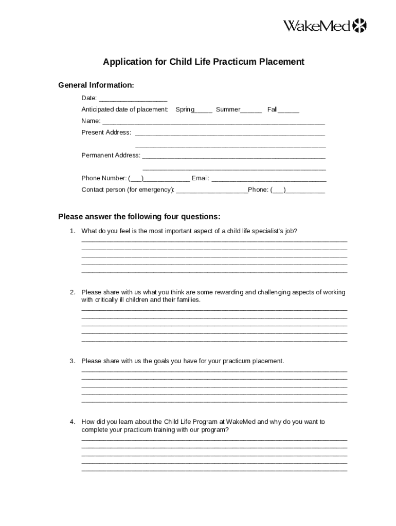 How to fill Child Life Services Practicum Placement Process and ... word template