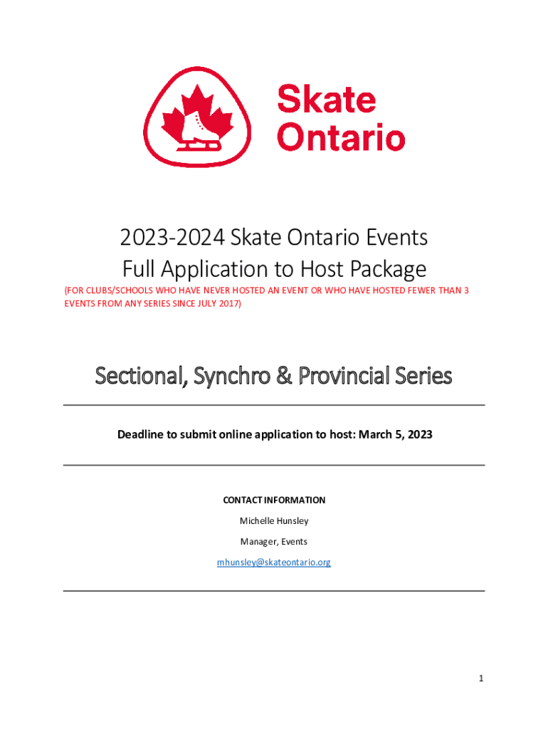 20232024 Skate Ontario Events Full Application to Host Package (FOR CLUBS/SCHOOLS WHO HAVE NEVER HOSTED AN EVENT OR WHO HAVE HOSTED FEWER THAN 3 EVENTS FROM ANY SERIES SINCE JULY 2017)Sectional, Synchro