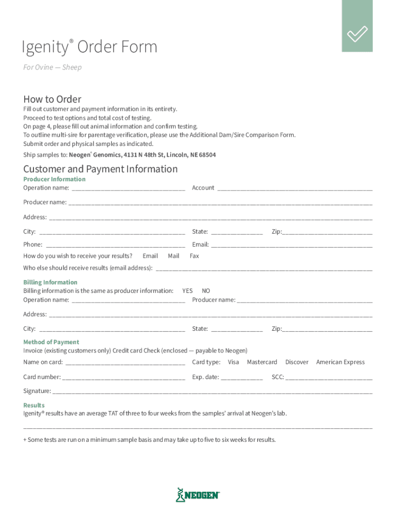 Get the free Igenity Order Form for Ovine - Sheep