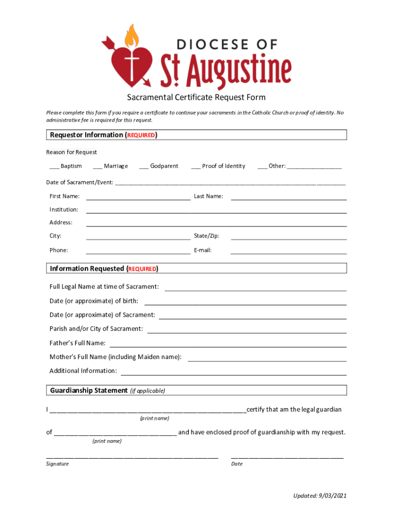 Get the free Sacramental Certificate Request Form - Archives - Diocese of St ...
