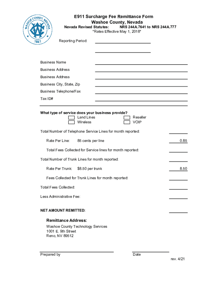 Providers must report details such as total amount due, account information, service coverage area, and other relevant data on the e911 surcharge remittance form1xls.