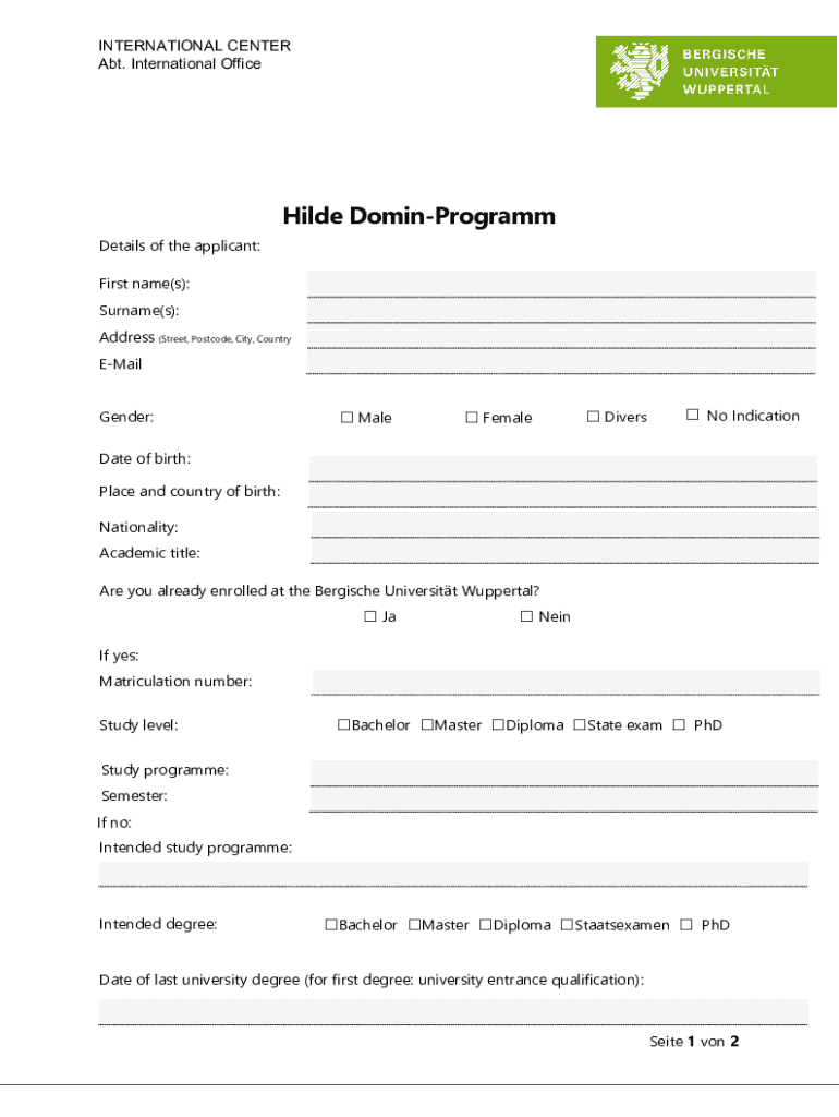 ABT. International OfficeDetails of the applicant:Hide DominProgrammFirst name(s):