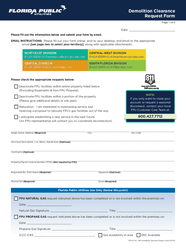 Demolition Clearance Request Form Page 1 of 2Date: ___ Please fill out the information below and submit your form by email. EMAIL INSTRUCTIONS:Please fill out your form online, save to your desktop,