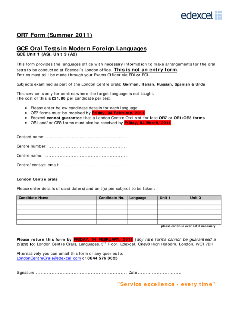 Get the free OR7 Form (Summer 2011) GCE Oral Tests in Modern ...