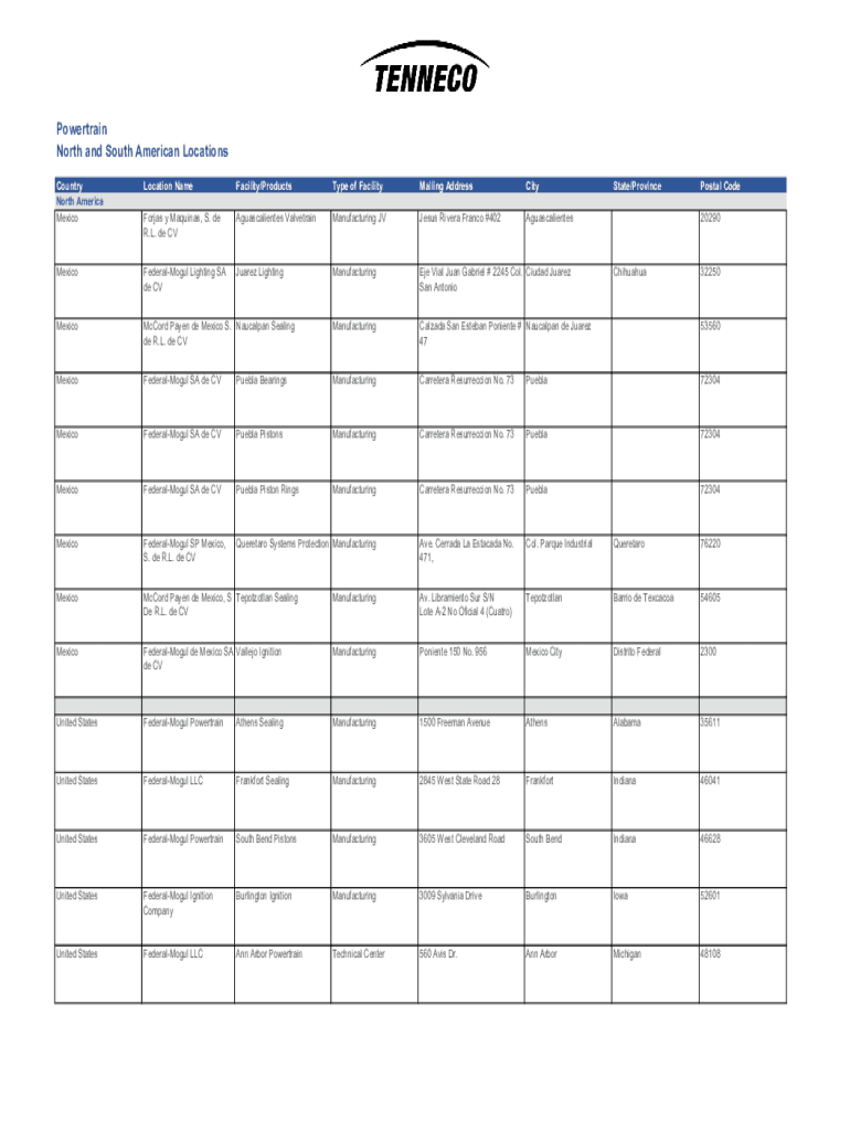 MexicoLocation Amenability/ProductsType of FacilityMailing AddressCityForjas y Aquinas, S. de