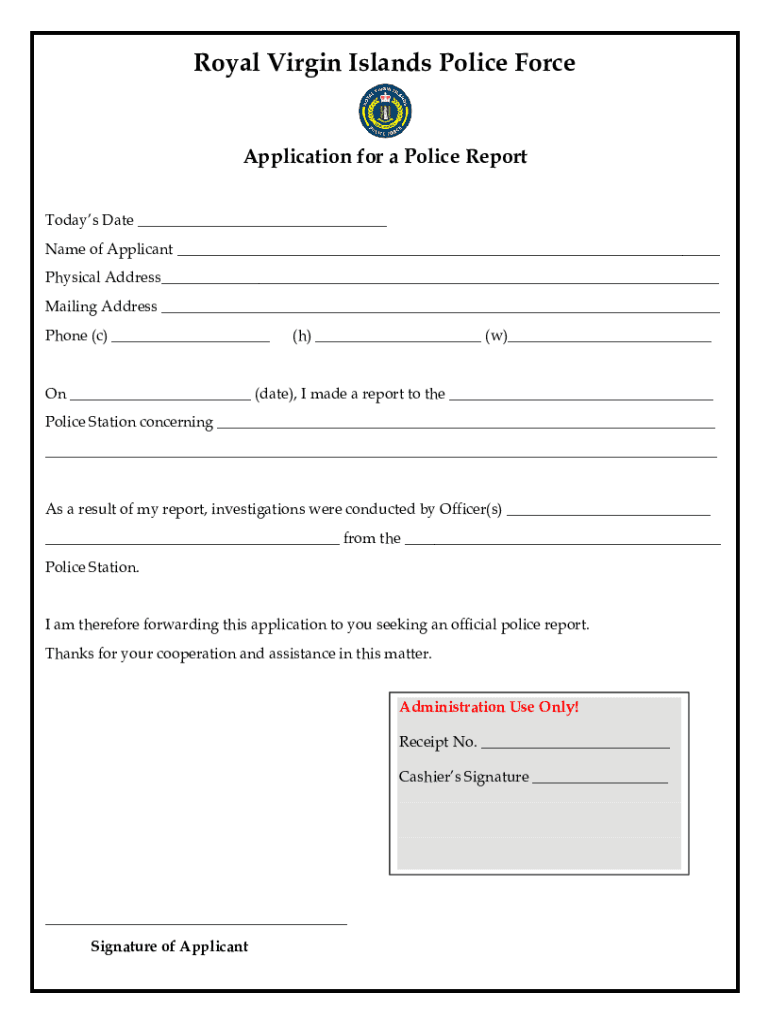Get the free Application for Police Report 1 (Revised) - bvi gov