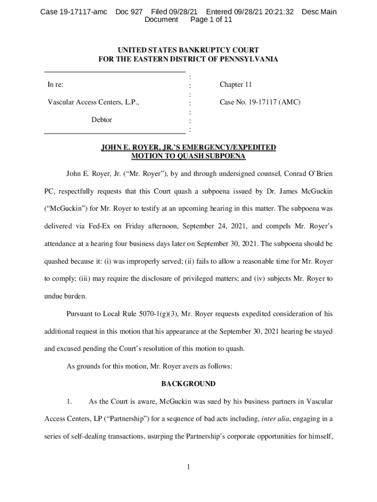 Case 1917117amcDoc 927Filed 09/28/21 Entered 09/28/21 20:21:32 Document Page 1 of 11Desc Maintained STATES BANKRUPTCY COURT FOR THE EASTERN DISTRICT OF PENNSYLVANIA In re: Vascular Access Centers,