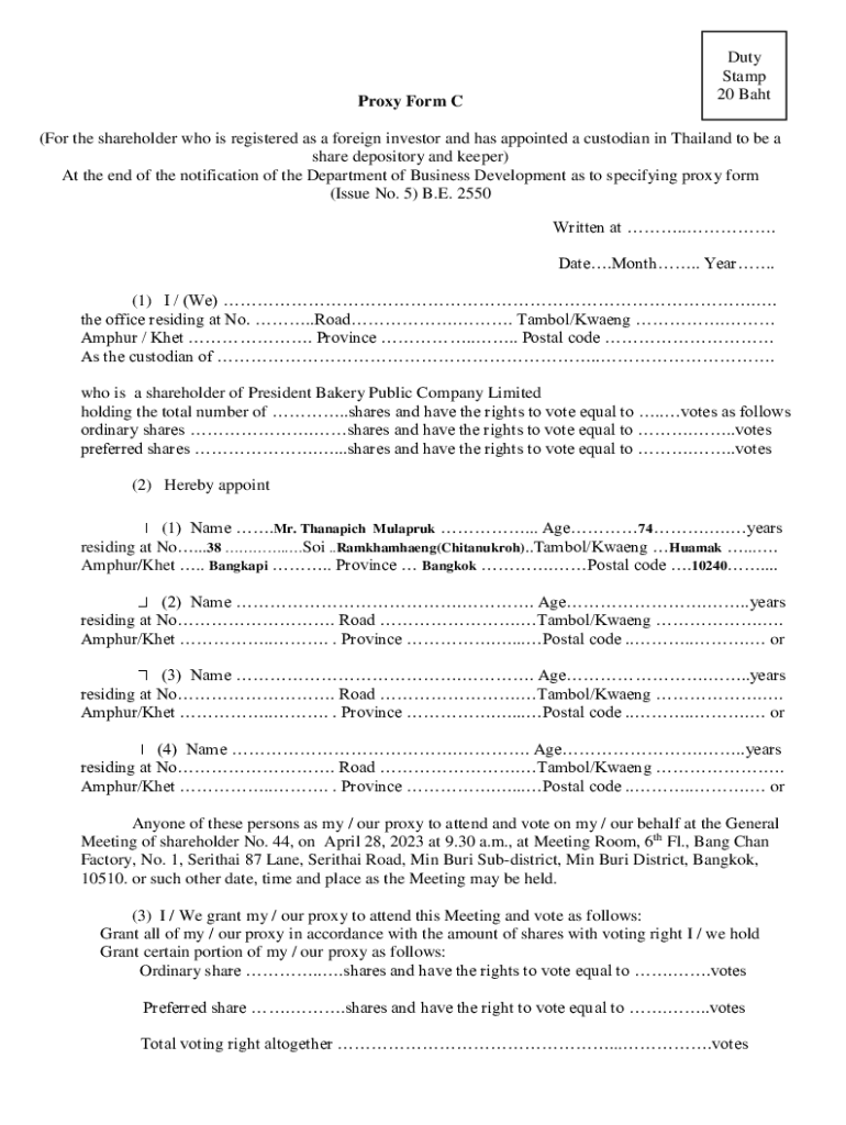 Get the free Proxy Form C (For the shareholder who is registered as ...