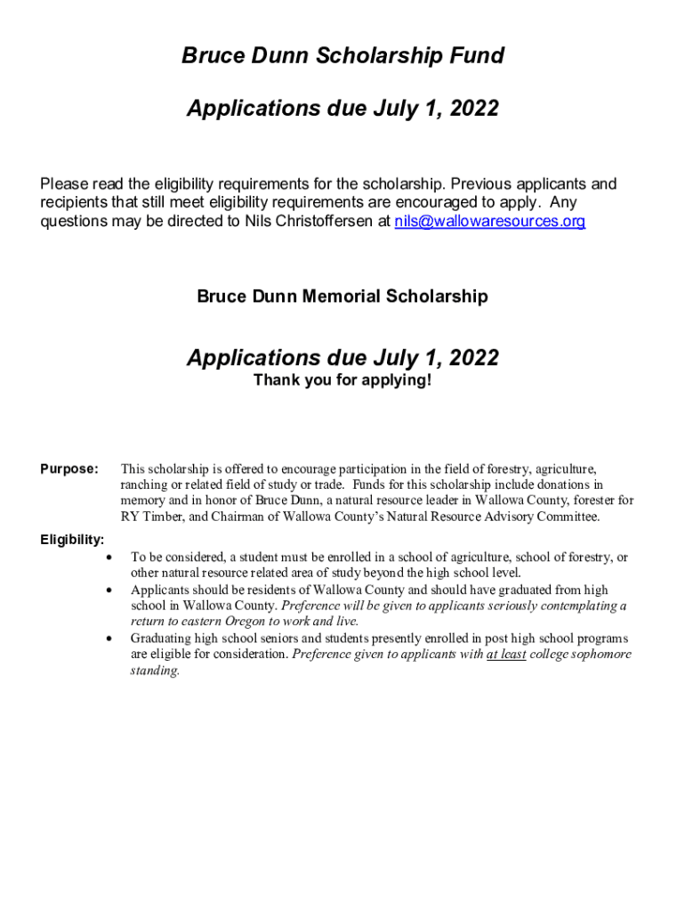 Get the free Applications to the Bruce Dunn Scholarship Fund are being ...