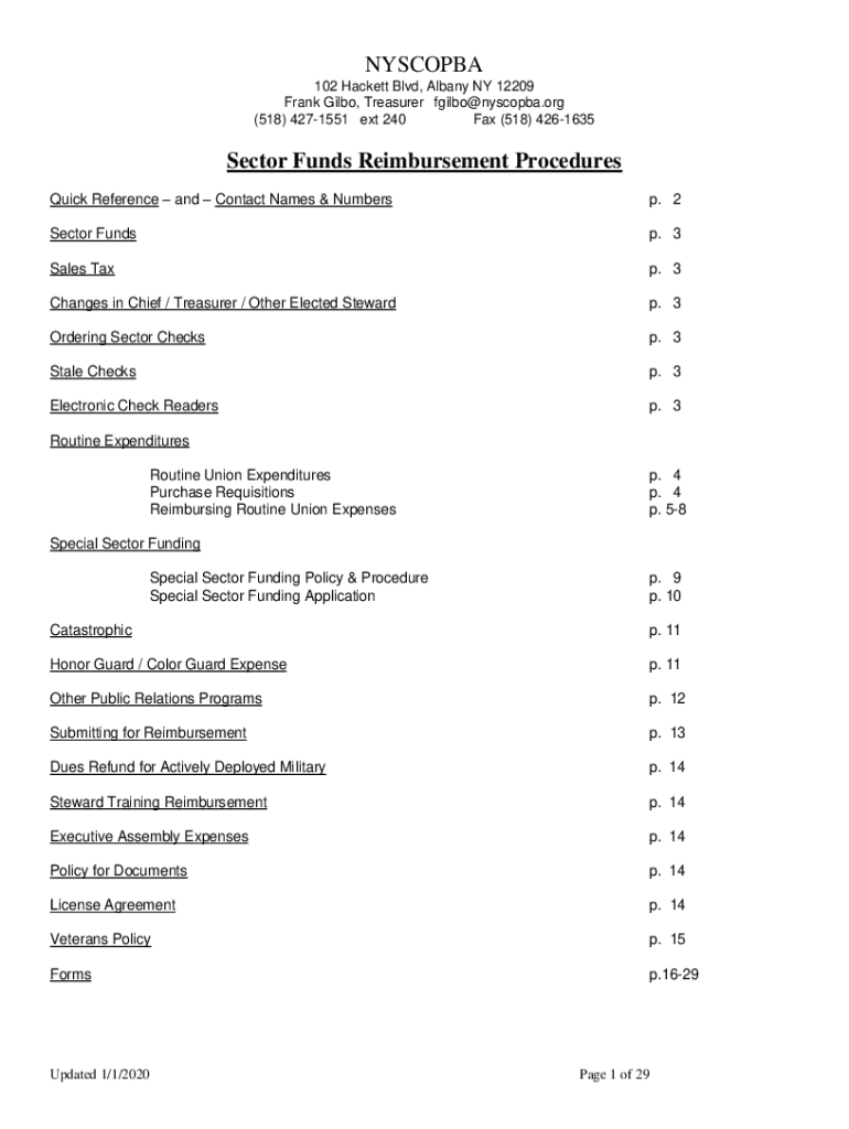 DYSTOPIA 102 Hackett Blvd, Albany NY 12209 Frank Bilbo, Treasurer fgilbo@nyscopba.org (518) 4271551 ext 240 Fax (518) 4261635Sector Funds Reimbursement Procedures Quick Reference and Contact Names