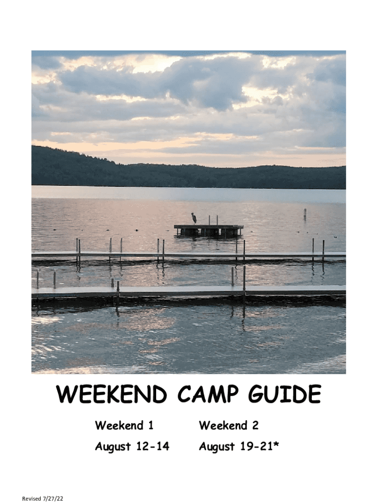 WEEKEND CAMP GUIDERevised 7/27/22Weekend 1Weekend 2August 1214August 1921×Dear Scout/Parent/Leader, Thank you for choosing Camp Baleen as your Weekend summer Camp this year. We have a lot of fun