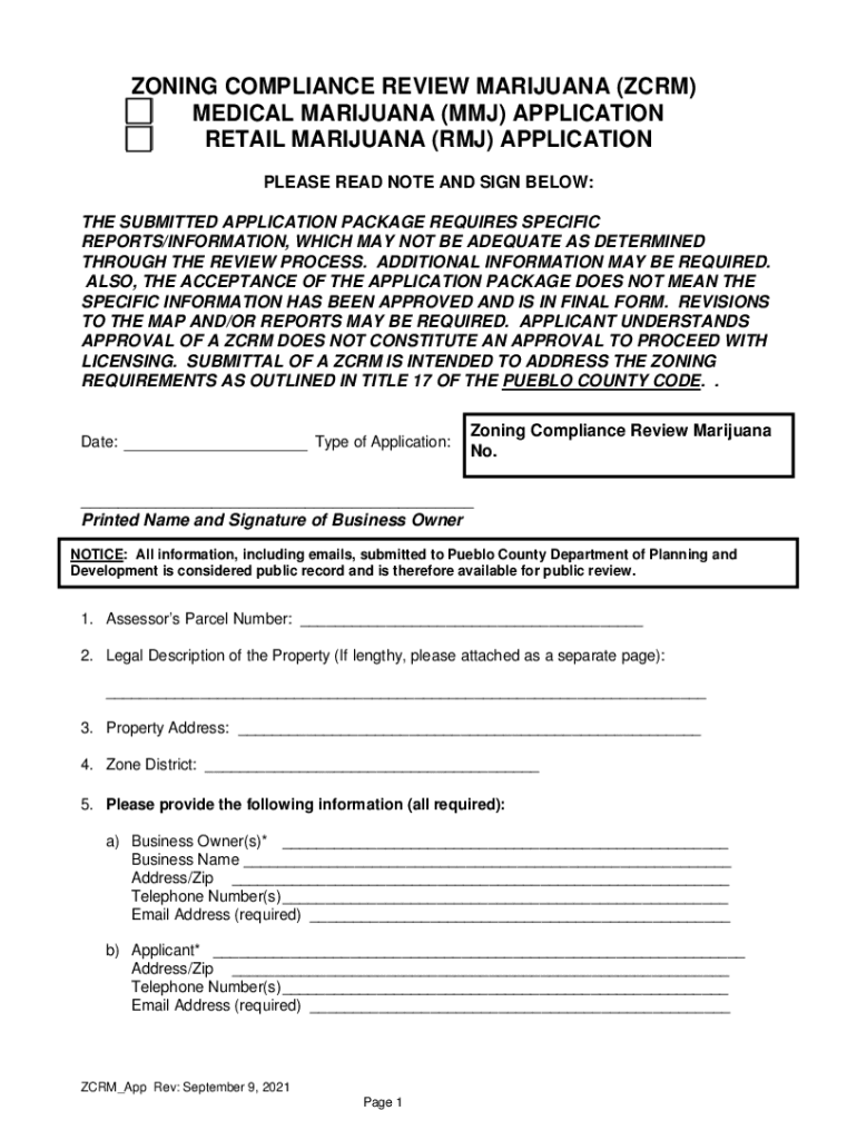 Get the free New ZCRM Application 09-07.doc - county pueblo