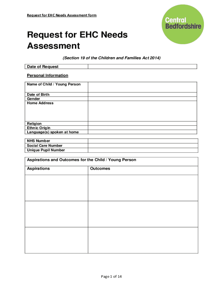 Get the free Requesting an EHC needs assessment form. SEND