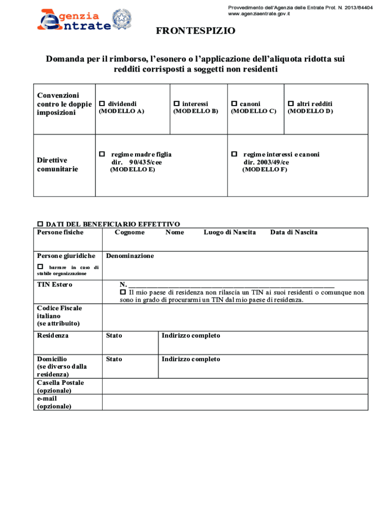 Provvedimento dell\'Agenda Dell Entr ate Plot. N. 2013/84404 www.agenziaentrate.gov.it!FRONTESPIZIO Demand per IL rumors, lesser o application dellaliquota ricotta sew Reddit corrisposti a suggests