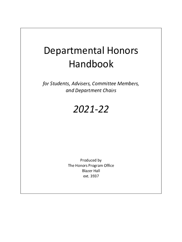 Departmental HonorsHandbookfor Students, Advisers, Committee Members, and Department Chairs202122Produced byte Honors Program OfficeBlazer Hall ext. 3937CONTENTSSchedule of Dates3General Information5EligibilityAcademic Creditors and Responsibilities6Procedures7Uploading to SOAR digital archiveResources for Your Research