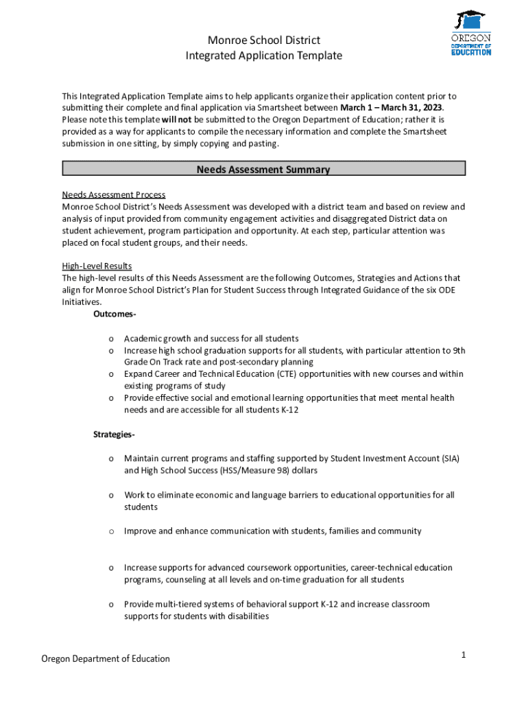 Monroe School District Integrated Application Template This Integrated Application Template aims to help applicants organize their application content prior to submitting their complete and final