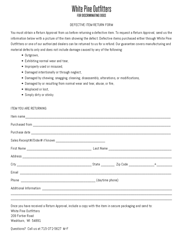 You must obtain a Return Approval from us before returning a defective item. To request a Return Approval, send us the information below with a picture of the item showing the defect. Defective items