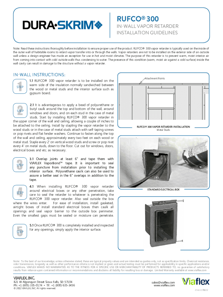 RU FCO 300INWALL VAPOR RETARDER INSTALLATION GUIDELINES Note: Read these instructions thoroughly before installation to ensure proper use of the product. RU FCO 300 vapor retarder is typically used