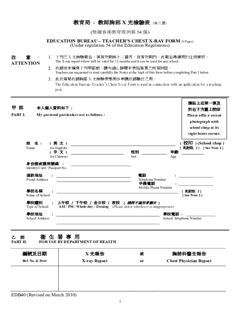 X ()(54) EDUCATION BUREAU TEACHERS CHEST RAY FORM (8 Pages) (Under regulation 54 of the Education Regulations) ATTENTION1. X The Ray report below will be valid for 12 months, and it can be used for