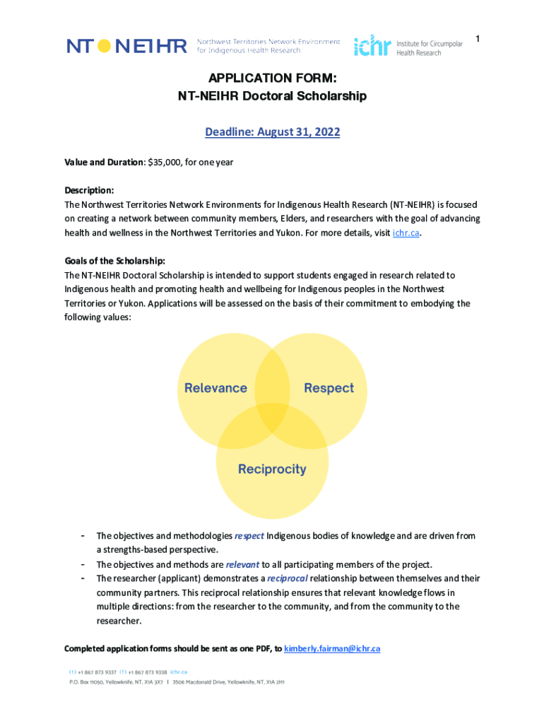 To fill out the nt-neihr doctoral scholarship application, applicants must provide information about their academic background, research interests, and financial need.
