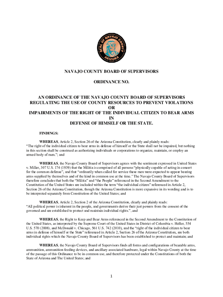 NAVAJO COUNTY BOARD OF SUPERVISORS ORDINANCE NO.AN ORDINANCE OF THE NAVAJO COUNTY BOARD OF SUPERVISORS REGULATING THE USE OF COUNTY RESOURCES TO PREVENT VIOLATIONS OR IMPAIRMENTS OF THE RIGHT OF THE