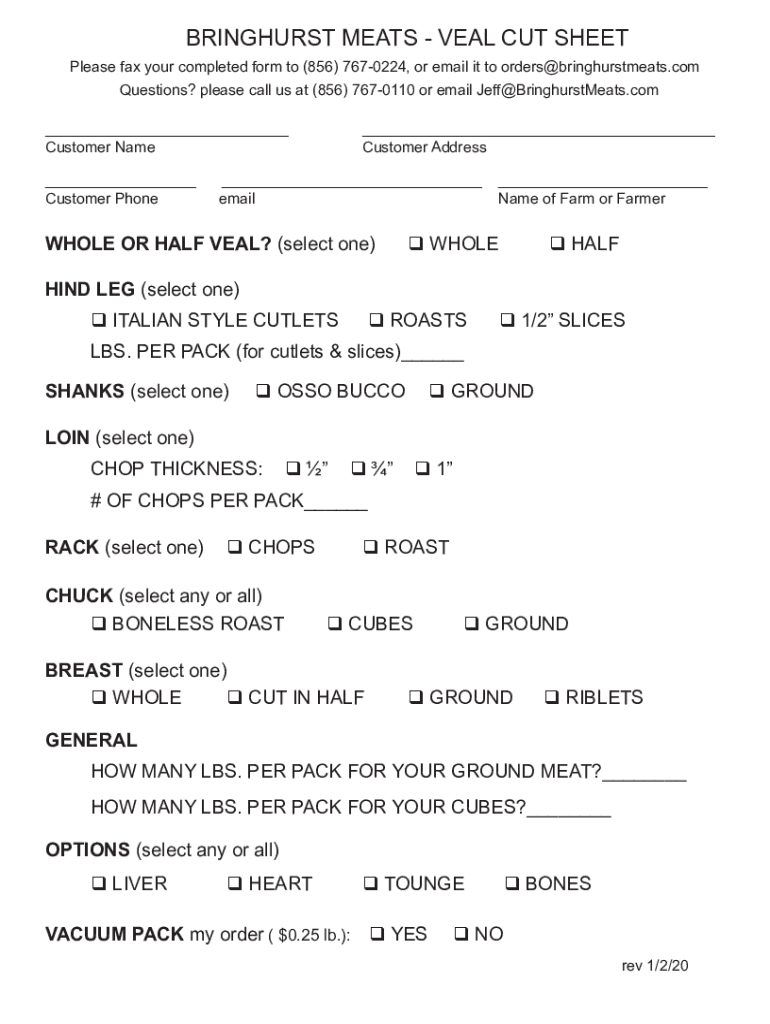 Please fax your completed form to (856) 7670224, or email it to orders@bringhurstmeats.com