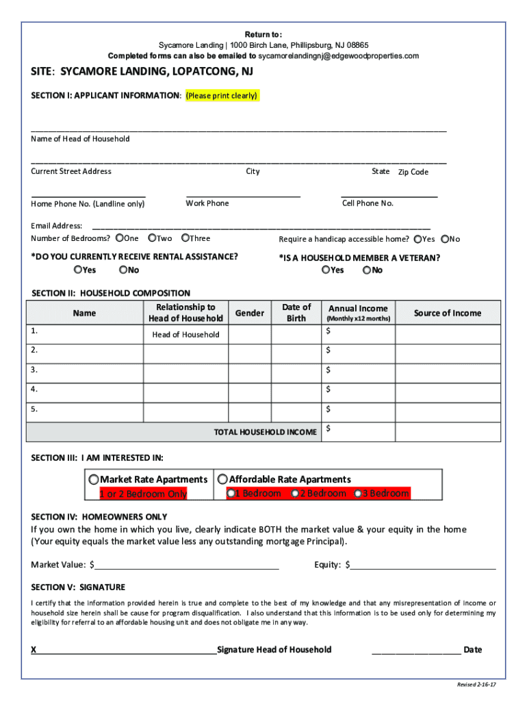 PHILLIPSBURG, NJ AFFORDABLE APARTMENTS!NOW LEASING! Sycamore Landing is now accepting preliminary applications for our brand new affordable 1, 2 & 3bedroom apartments! Preference will be given to
