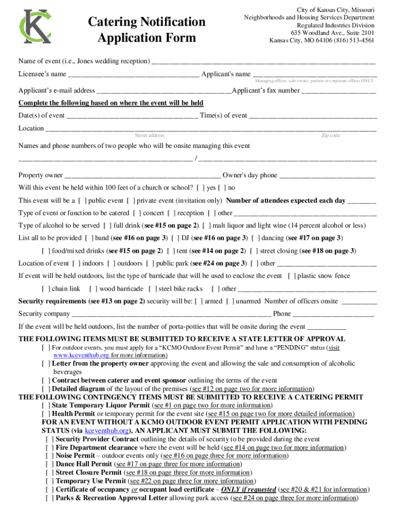 Kansas City, MO 64106 (816) 5134561Catering Notification