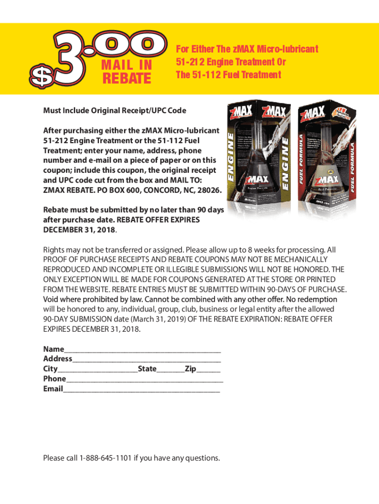 MAIL INREBATEFor Either The Max Microlubricant 51212 Engine Treatment Or The 51112 Fuel Treatments Include Original Receipt/UPC Code After purchasing either the Max Microlubricant 51212 Engine Treatment